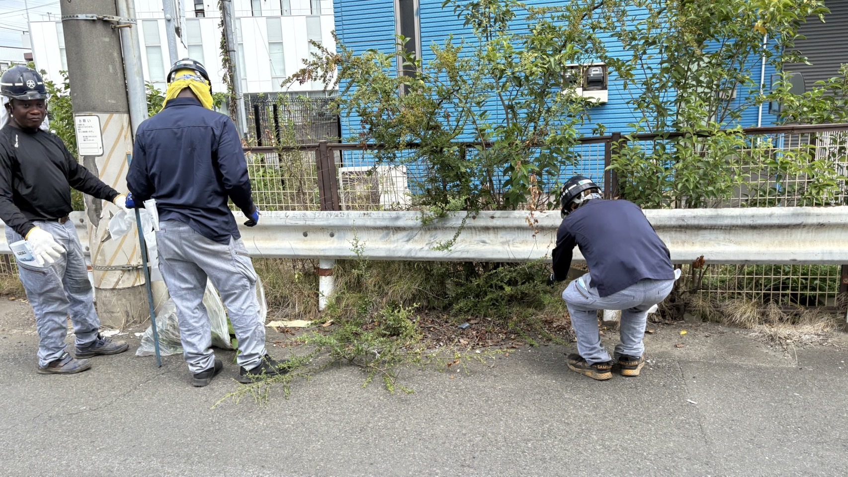 大会の最後には、会社周辺でゴミ拾いと草むしりを実施。