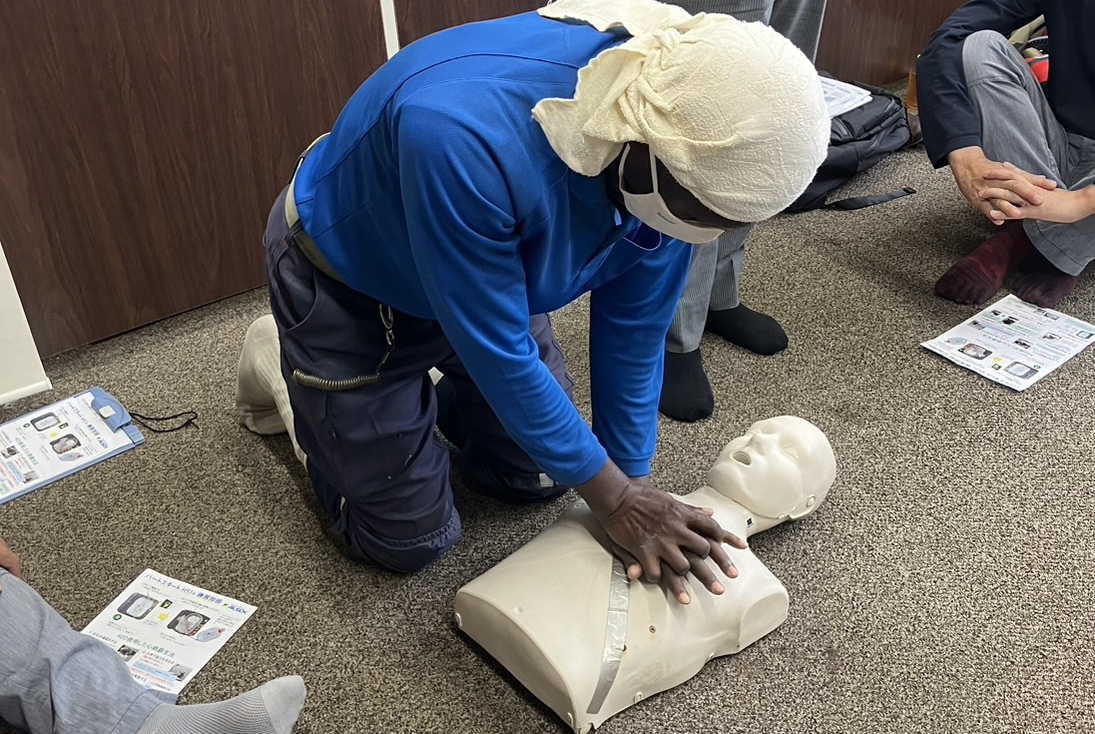 外部講師を招いて、AEDの使い方や心肺蘇生法(CPR)を学びました。